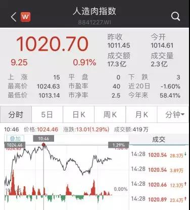 近年來,人造肉市場發(fā)展十分迅速。據(jù)市場調(diào)查局機構(gòu)歐睿數(shù)據(jù)顯示,全球人造肉市場在2017年和2018年分別增長了18%和22%。另外,人造肉指數(shù)自10月8日以來連續(xù)上漲,截至發(fā)稿,報1020.70元,上漲0.91%。