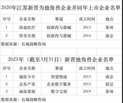 2020年江蘇新晉為獨(dú)角獸企業(yè)并同年上市企業(yè)名單
