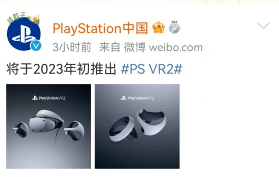 索尼PlayStation中國微博官方賬號宣布,將于2023年初推出PS VR2。