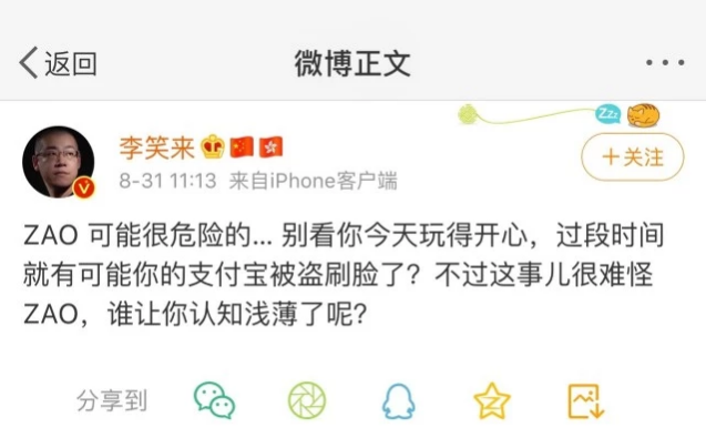 想和你的“現(xiàn)男友”同框大撒狗糧嗎?想和周董同臺飆歌嗎?想和愛豆在朋友圈“單方面官宣”嗎?近日,ZAO承包了小編周末的朋友圈,完成了眾多迷弟迷妹的夢想!但今天,在微信平臺上卻查無此應用了。