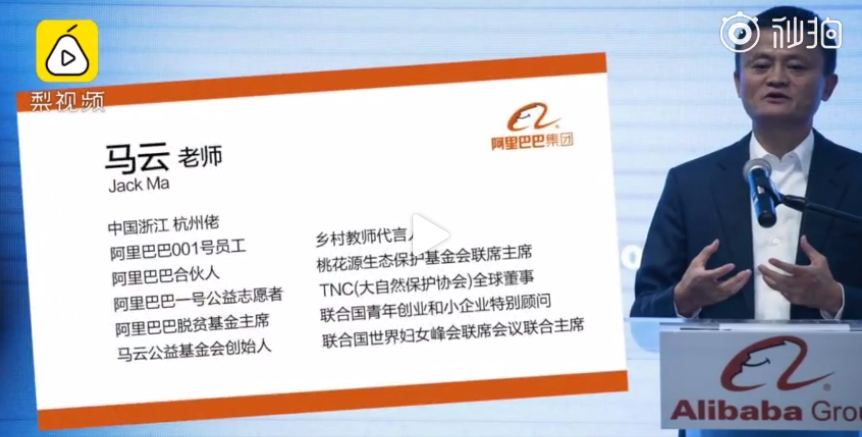 去年此時(shí),馬云公布了最新名片:中國浙江 杭州佬、阿里巴巴001號(hào)員工、阿里巴巴合伙人、阿里巴巴一號(hào)公益志愿者、阿里巴巴脫貧基金主席、馬云公益基金會(huì)創(chuàng)始人、鄉(xiāng)村教師代言人、桃花源生態(tài)保護(hù)基金會(huì)聯(lián)席主席、TNC(大自然保護(hù)協(xié)會(huì))全球董事、聯(lián)合國青年創(chuàng)業(yè)和小企業(yè)特別顧問、聯(lián)合國世界婦女峰會(huì)聯(lián)席會(huì)議聯(lián)合主席以上11個(gè)相關(guān)頭銜,這確保了未來阿里巴巴的發(fā)展不會(huì)脫離馬云設(shè)計(jì)的軌道。而馬云未來的動(dòng)向可通過其名片上另外九個(gè)職務(wù)略見一斑。