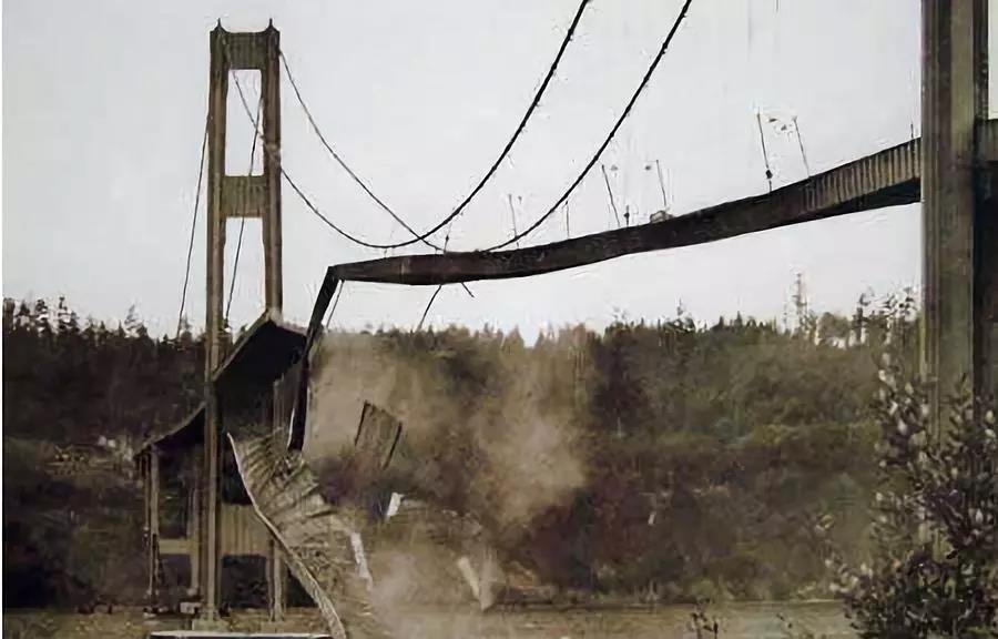 吊橋于 1940 年 7 月 1 日通車,但每當(dāng)起風(fēng)時(shí),橋梁在共振頻率的驅(qū)動(dòng)下會(huì)產(chǎn)生不可控的振蕩和扭轉(zhuǎn),僅僅過(guò)了四個(gè)月,這座 200 米長(zhǎng)的橋從中部斷開(kāi),倒塌了。