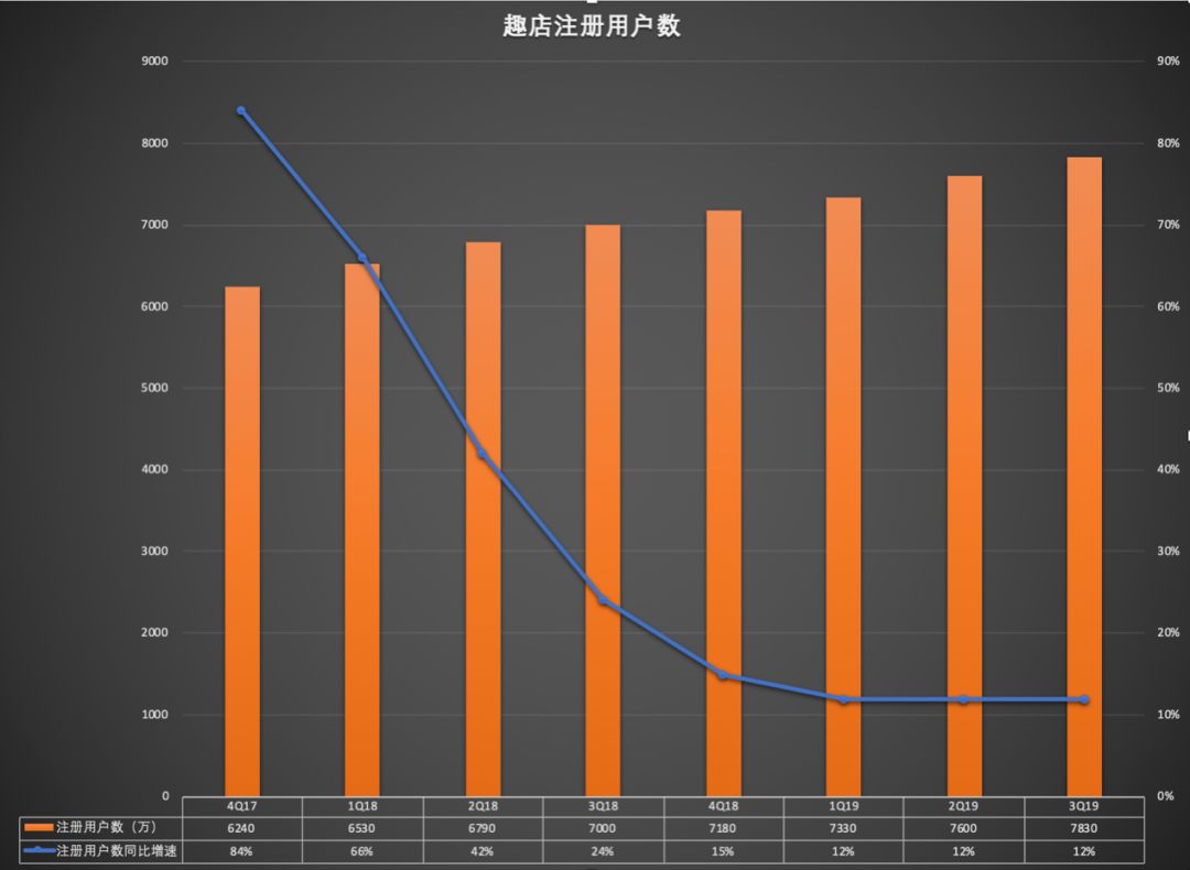 在結(jié)束與支付寶的合作之后,趣店的注冊用戶增長率降至11%附近,光環(huán)不再。