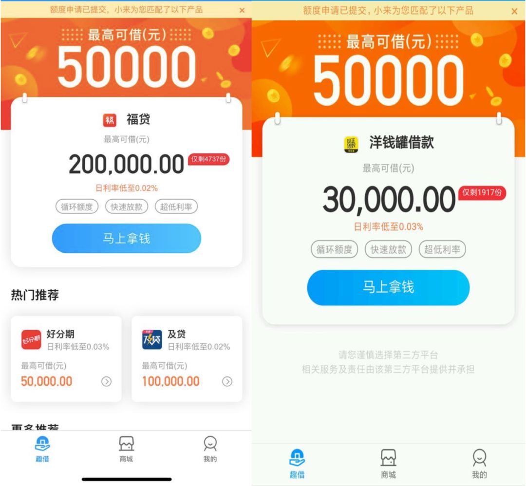 有用戶投訴:“每個星期都有趣店的員工打電話問要不要借錢。未授信的用戶信息常常會轉(zhuǎn)給不合規(guī)的平臺,趣店收取中介費。”