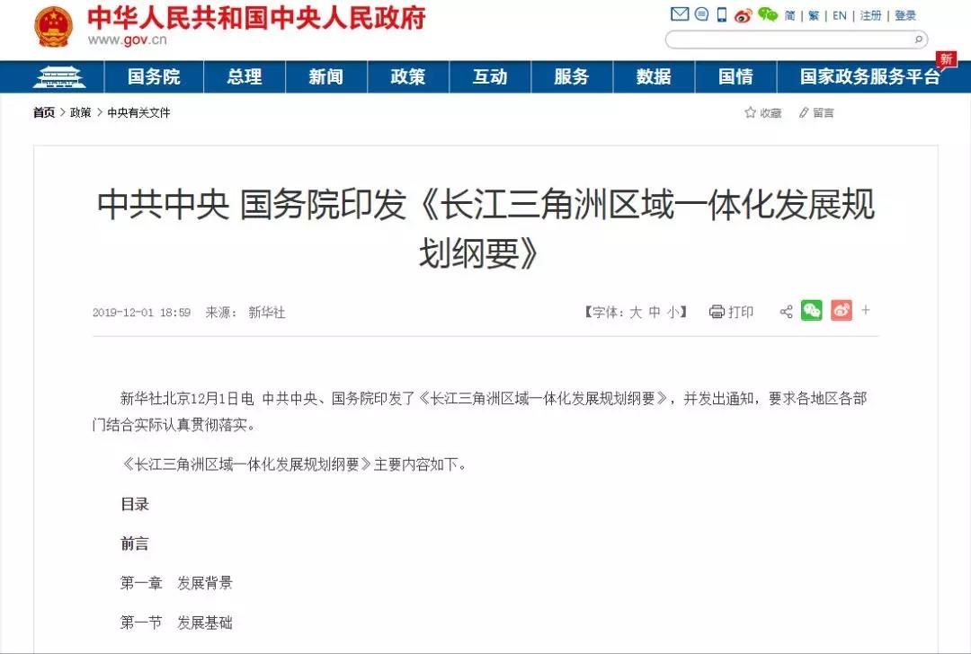 12月1日,新華社發(fā)布了中共中央、國務(wù)院印發(fā)的《長江三角洲區(qū)域一體化發(fā)展規(guī)劃綱要》。繼粵港澳大灣區(qū)之后,長三角區(qū)域一體化發(fā)展的宏偉藍(lán)圖也鋪展開來。