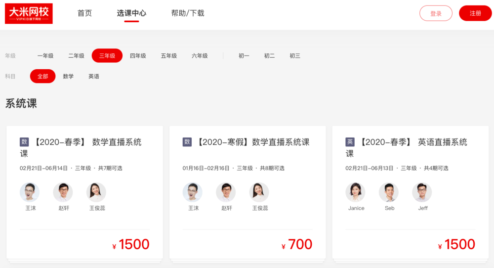 她認為,大米網(wǎng)校的誕生主要是基于VIPKID目前擁有的70多萬名學員的內(nèi)生需求。隨著年齡的增長,有不少在讀學員已經(jīng)升至小學三年級以上,擁有了除“一對一外教”外的更多學習需求。此外,推出大米網(wǎng)校也符合VIPKID一直以來對多班型、多學科的探索。