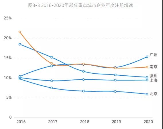 數據顯示,2016年到2020年的五年間,南京企業(yè)年度注冊增速始終穩(wěn)定在12%以上。
