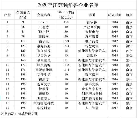 附:2020年江蘇獨(dú)角獸企業(yè)名單
