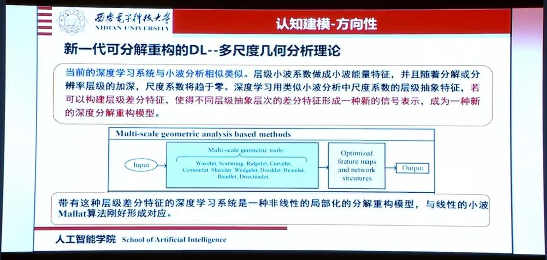 此外,我們還利用20多年前的多尺度幾何理論,建立了新一代可分解重構(gòu)的深度學(xué)習(xí)理論。我們不僅能構(gòu)建層級(jí)的差分特征,也能使不同層級(jí)抽象層級(jí)的差分特征形成一種新的信號(hào)表示,成為一種新的深度分解的重構(gòu)模型。上述這些工作都是基于多尺度幾何與深度學(xué)習(xí)的研究歷程和發(fā)展慣性展開(kāi)的。