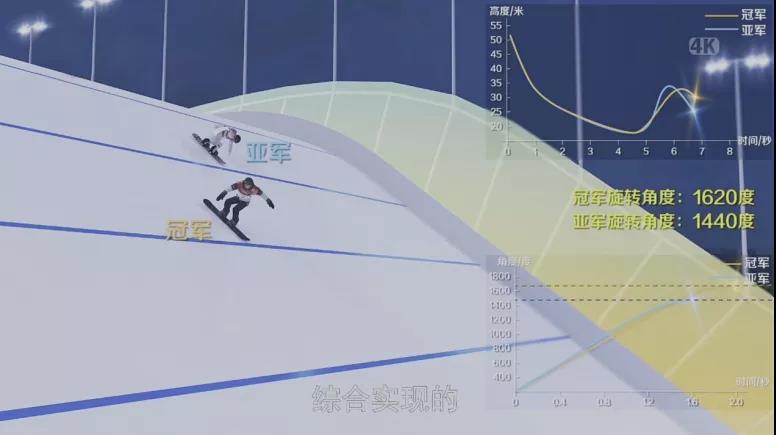 同時(shí),通過(guò)技術(shù)手段對(duì)運(yùn)動(dòng)員動(dòng)作進(jìn)行量化分析,將滑行速度、騰空高度、落地遠(yuǎn)度、旋轉(zhuǎn)角度等一系列運(yùn)動(dòng)數(shù)據(jù)與原始畫面疊加起來(lái),這解決了高速度、高難度動(dòng)作還原的難題。技術(shù)呈現(xiàn)的畫面再配合專業(yè)解說(shuō)的技術(shù)分解,觀眾可以更直觀地從流暢性、完成度、難度、多樣性和美觀度等角度了解選手之間的技術(shù)差異,輕松看懂冠、亞軍之爭(zhēng)。